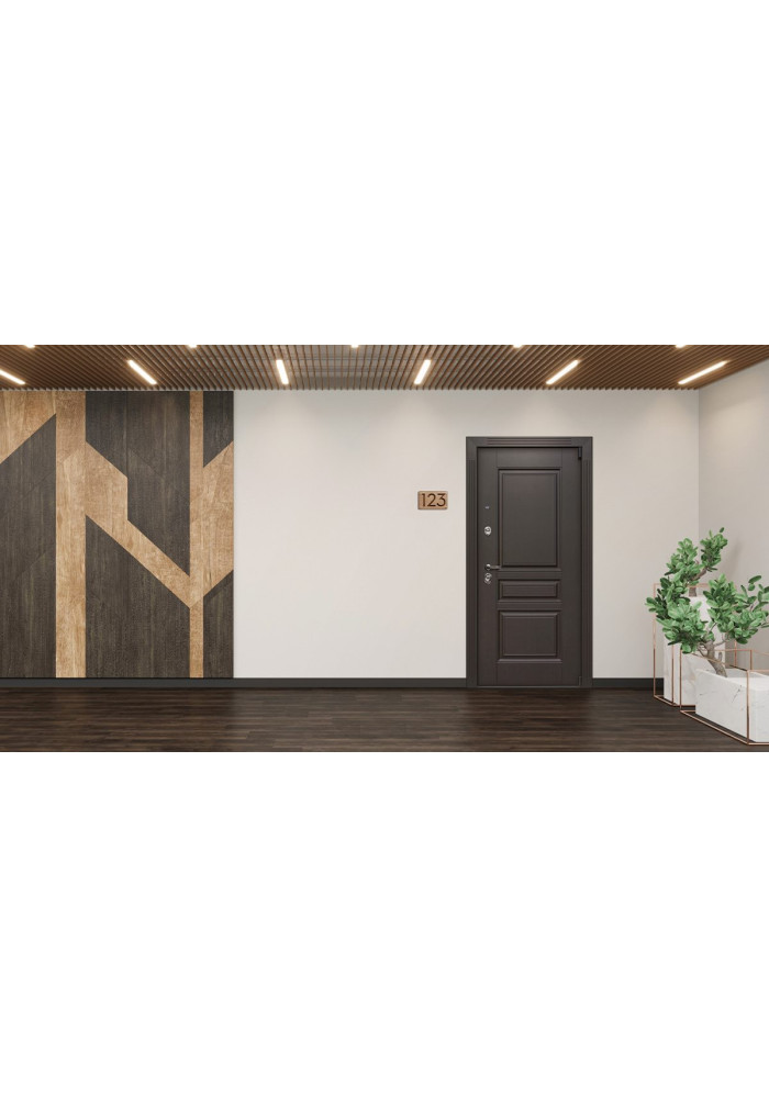 - Наружный лист металла: Лист металла 2 мм. Панель МДФ 16 мм. Объемная фрезеровка. Цвет "венге". Наличник МДФ: толщина 16 мм, ширина 85 мм.